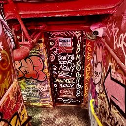 IF YOU WANT TO GET IN, YOU GOTTA KNOW THE PASSWORD!! This XXX themed speakeasy is one of the most popular cocktail bars in nyc. There's so much to see here - the staircase going down to the bar is everything - watch out for unsensored items if you want to record it. LOL. We found this place back in December when we traveled here and it was so much fun but it was sooo cold waiting outside at the time, we wanted to experience it in the summer and it was awesome! We love the 70s & 80s theme and all the drinks were pretty and good! Great place for a fun date night or for a large group of friends. The disco ball in the middle just makes me want to get up and dance. We were really hungry after watching a broadway show and this place had a full menu. The service was great as well, they were all so attentive and I could tell they get a lot of travelers but also some locals. Although drinks and food are decent, don't expect a high class bar experience... it is a bar. Menus can be sticky, your shoes might stick to the floors, drinks are bound to spill but the ~vibes~ are there. It can get quite crowded waiting outside the bar so you can go to Mean Fiddler next door for a drink first until the line ~maybe~ dies down. They both have great drinks. We only waited about 15 minutes! But while you wait, make sure you know the password or they won't let you in! You can do a bit of scavenger hunt in their website ;) Have fun!!